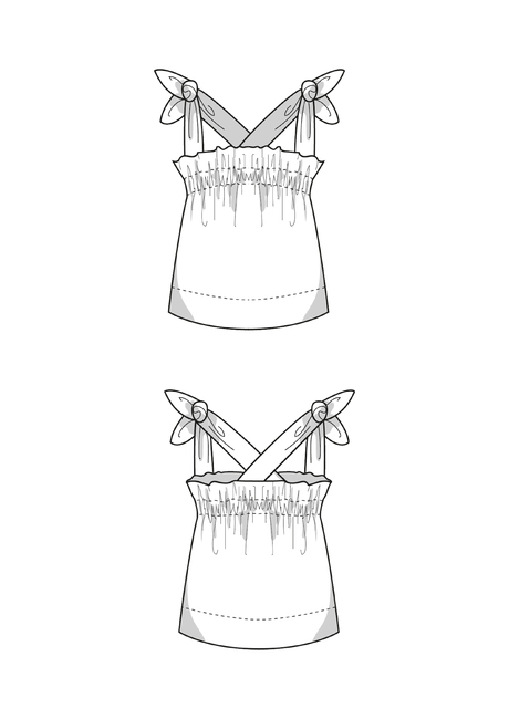 The sewing pattern for a blouse offers two different looks due to the flexible straps. With this sewing pattern you can sew your own blouse.