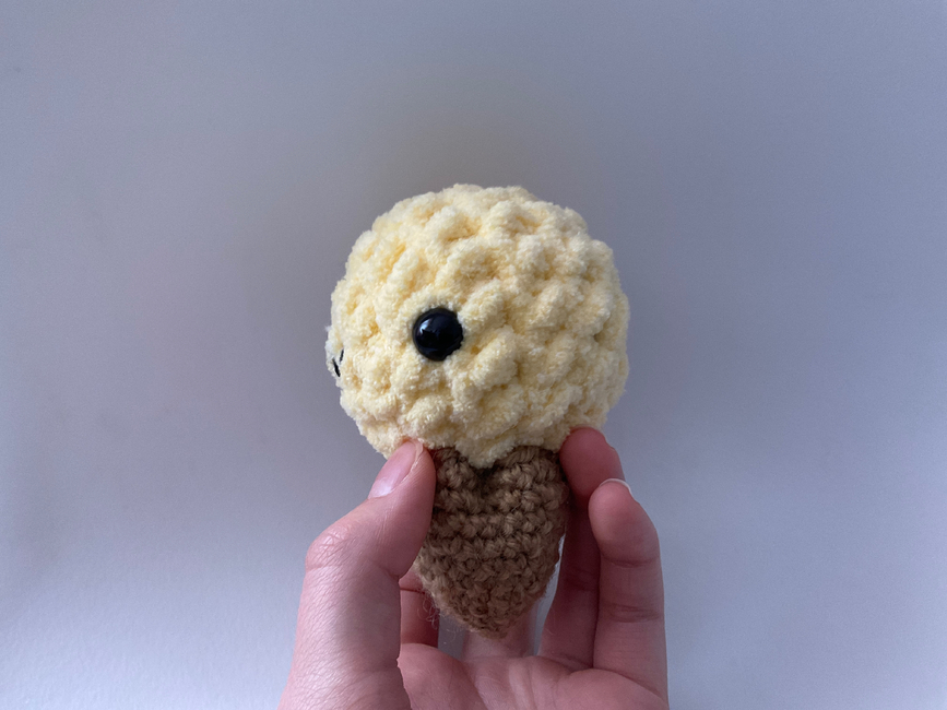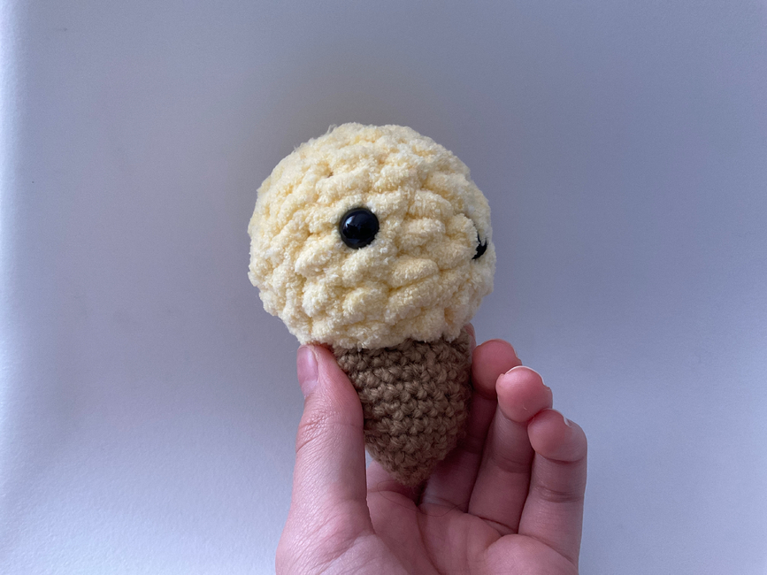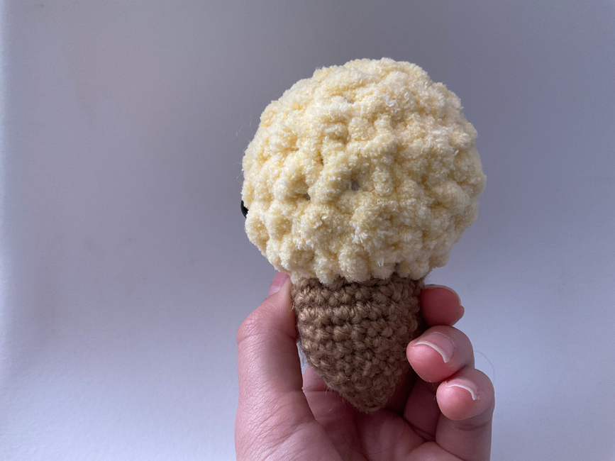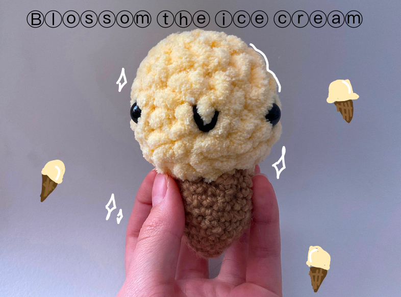 This is a cute vanilla ice cream if you love ice cream this pattern Is for you ! Don't let her out in the sun for to long ! You can name her whatever you want but her name is blossom! Nope you love this pattern and happy crocheting