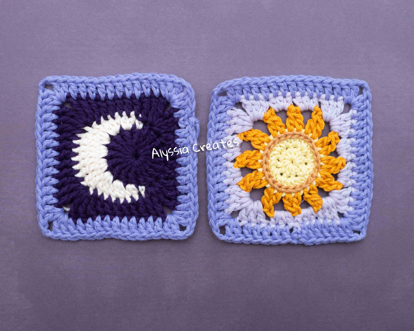 This is a pattern bundle for my sun and moon granny squares! The patterns are detailed and includes many photos for those that are more visual learners!