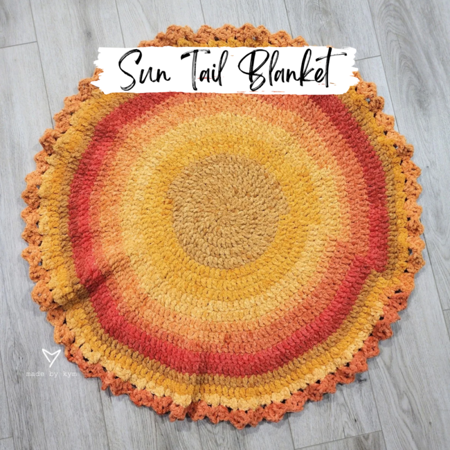 Made by KYM designed the Sun Tail Blanket pattern. Find more of their patterns on their Ribblr shop page.