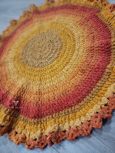 Sun Tail Blanket is an Intermediate Crochet pattern designed by Made by KYM for making a Home Decor. A sweet circle blanket with a detailed border that reminds me of the sun. This design was inspired by my Goldfishie Pouch tail. The body of the blanket is an easy repeat making this a perfect make for binge watching your favorite show. I have yard...