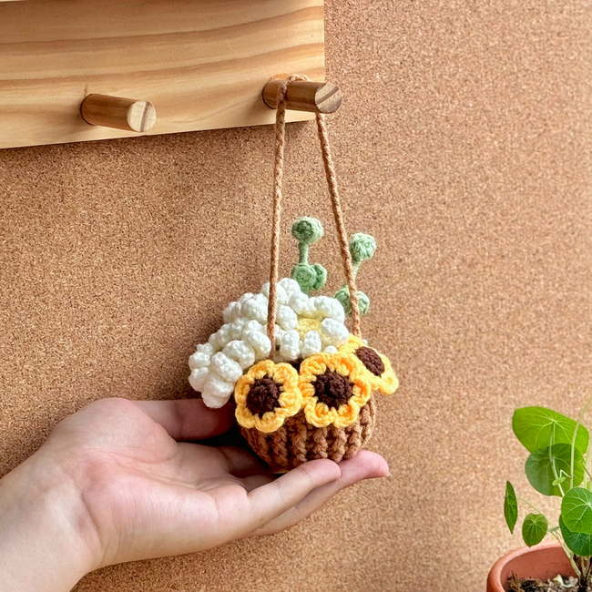 Sunflower Basket Mix Crochet Pattern, Plant Crochet Pattern, Hanging Plant Pattern, Flower Basket Hanging Crochet(copy)