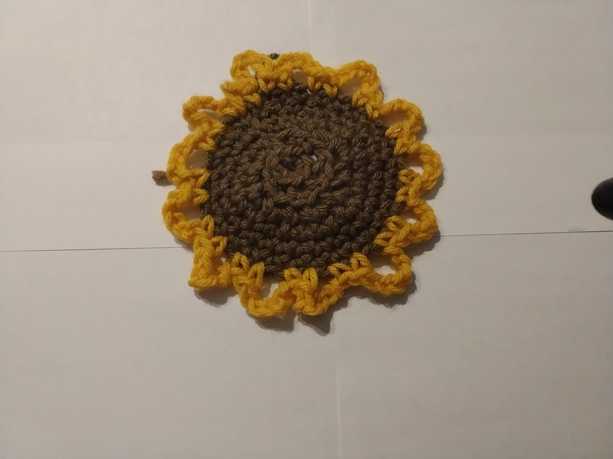 This is a sunflower coster and I made this because I was bored so I hope yours turns out like mine