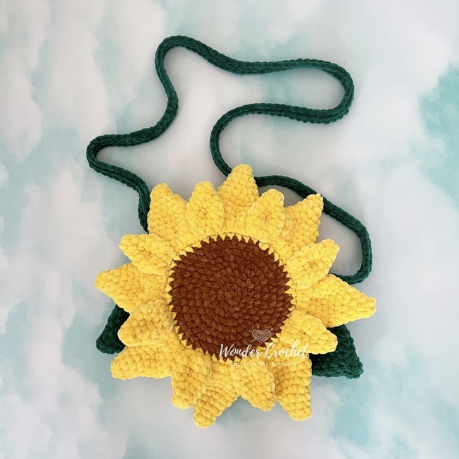 Make your own sunflower crossbody bag with this crochet pattern. This bag is functional with a zipper and straps.