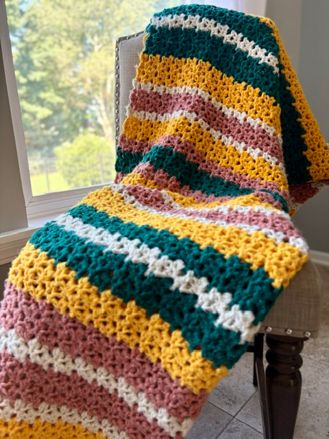 Perfect for gifting, home décor or as your next handmade heirloom, this pattern guides you step-by-step through color changes and stitch repeats.