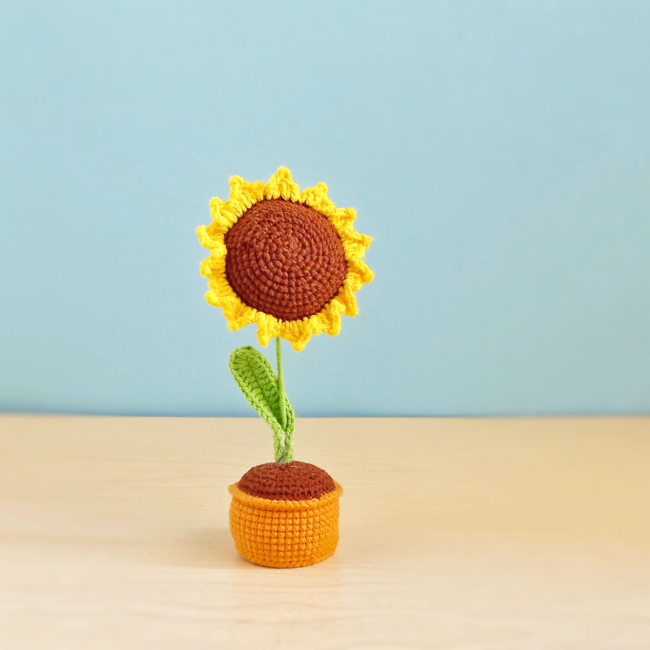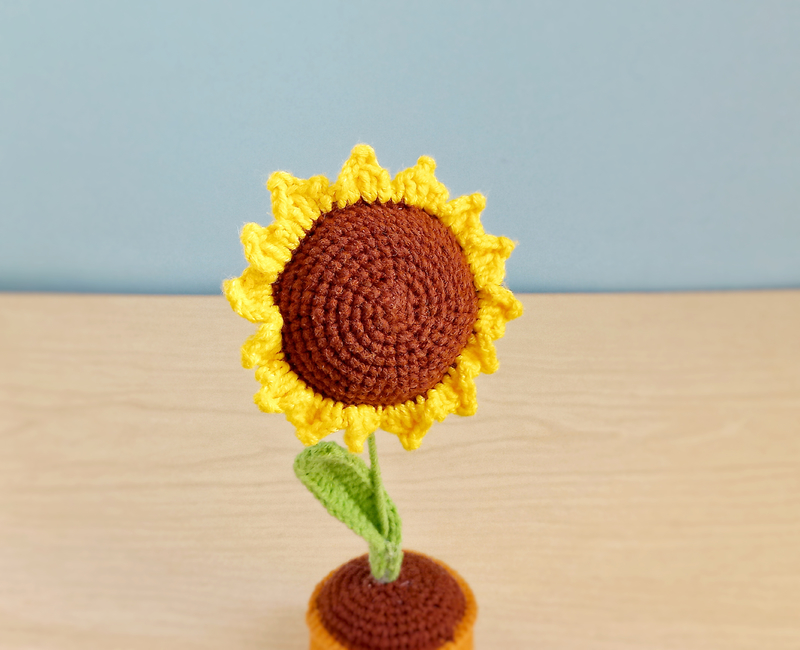 Make your own Sunflower in a Pot with TulipYarn pattern, The pattern is well-explained, easy to follow, and will definitely give you an adorable result!
