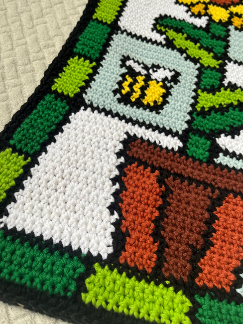 - Skill Level: Intermediate, only single crochet and chain stitches are used, but there are a lot of colour changes!