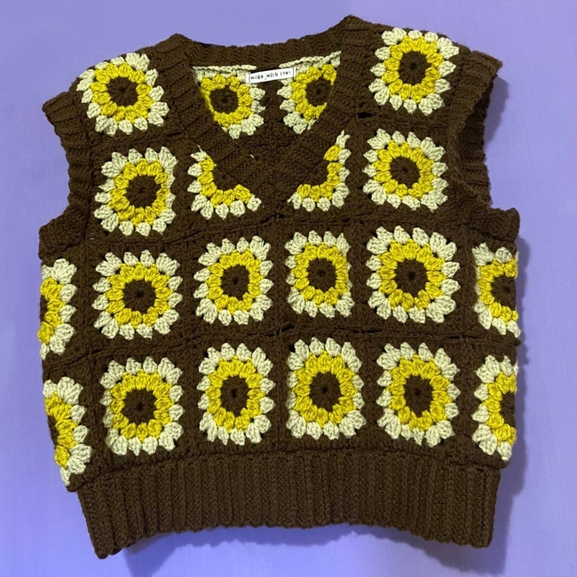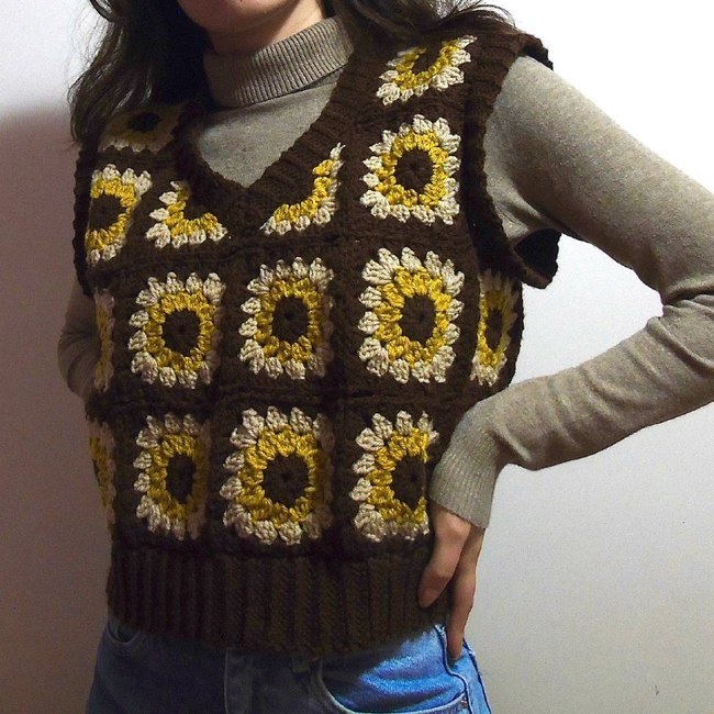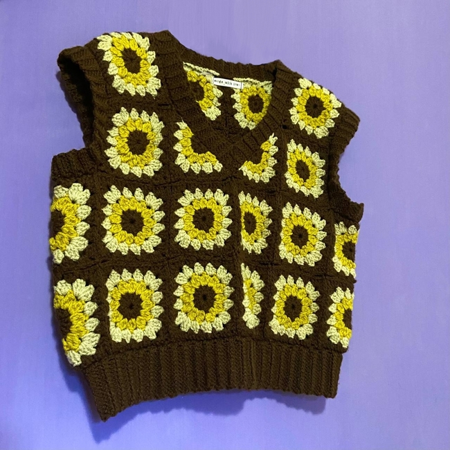 Hi! This is a beginner friendly crochet pattern for a vest made of sunflowers (or at least sunflower granny squares)!