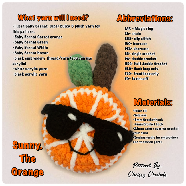 Brighten up your day with Sunny, The Orange the fruit that knows how to stay cool! Add this pattern to your cart and let your creativity shine!