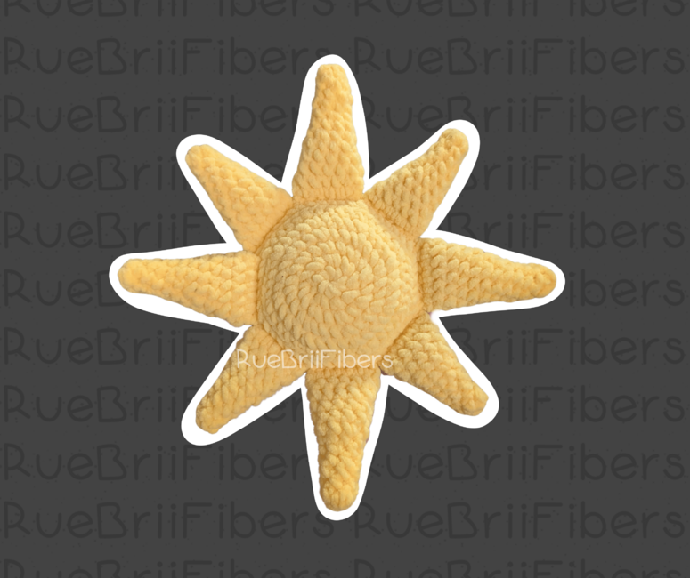 this No-Sew Sun/Star is a cheerful and easy crochet project made with soft, bulky yarnno sewing required! Featuring a round, plush body and 8 bold, spiky rays, the perfect blend of cozy and radiant. Great for beginners, this quick project adds a burst of warmth and charm to any space.