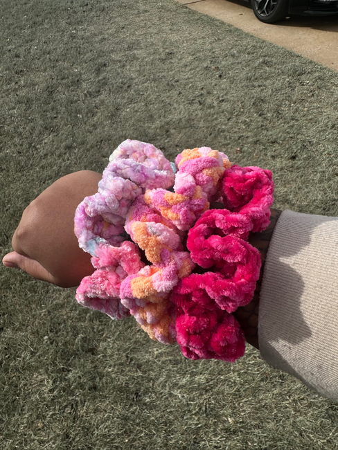 JeweledCrochets designed the Super Crunchy Scrunchie pattern. Find more of their patterns on their Ribblr shop page.