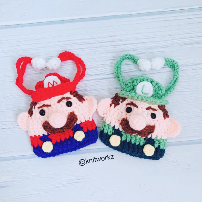 Super Mario and Luigi Airpods Drawstring Pouch Pattern