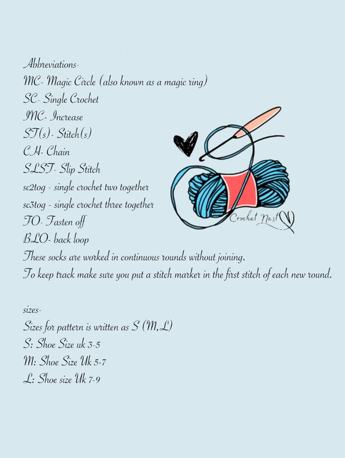 Super Simple Crochet Sock Pattern is an Intermediate Crochet pattern designed by Crochetnest_bybrooke for making a Clothing. This is a CROCHET PATTERN and NOT the finished item*This sock pattern is crocheted from the toe up to the leg in one. NO SEWING REQUIRED! Sizes available to crochet are adults size 3-9!Skill Level: Intermediate Please see attached photos for mater...