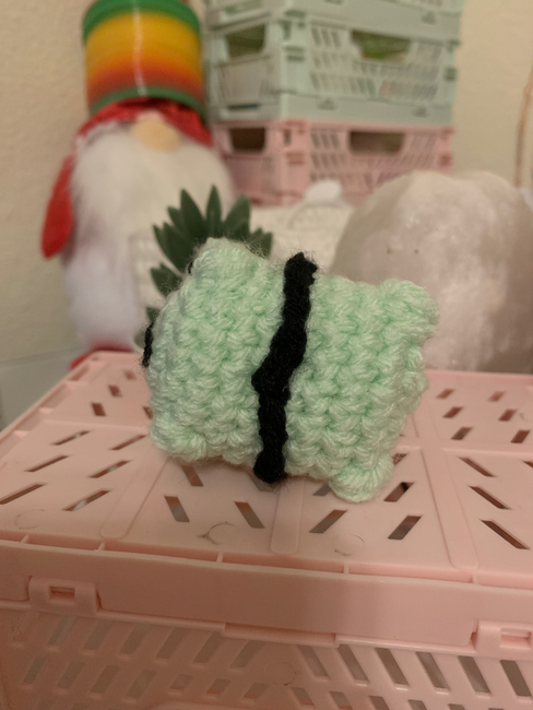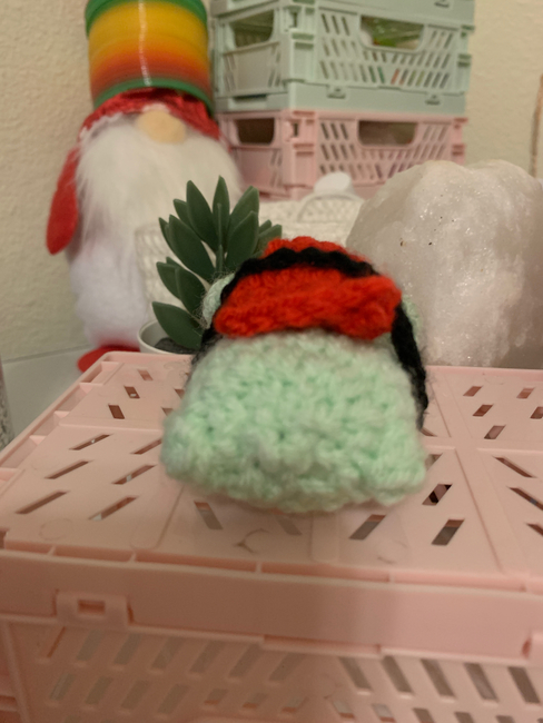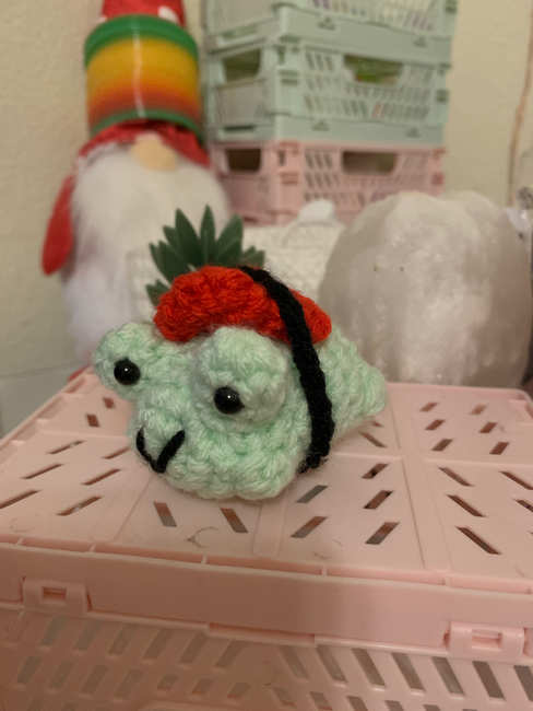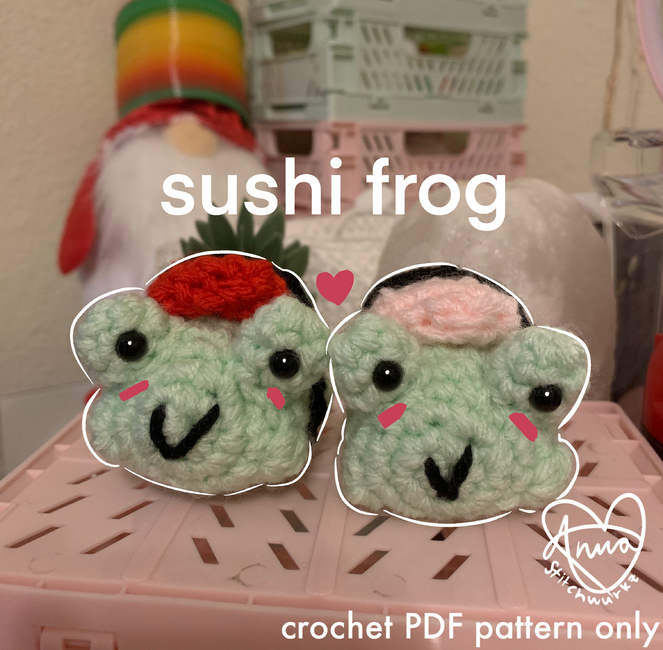Green- Main frog color Black- Nori and Face details Salmon- Sushi color