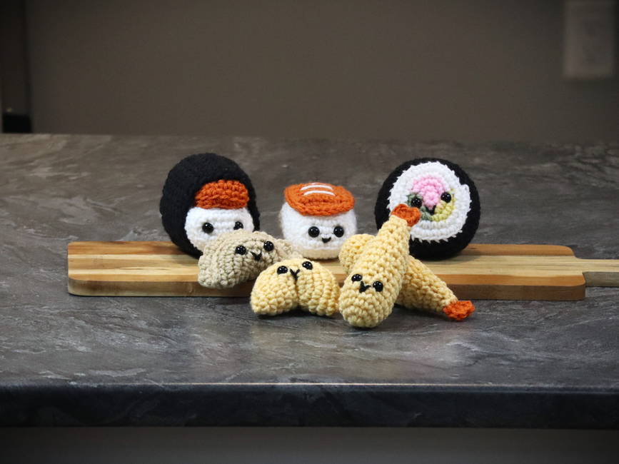 The sushi measures approximately 3.5" tall by 3.5" wide.