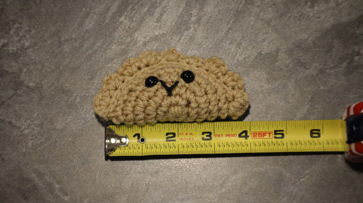 The dumpling measures approximately Small Pierogi: 4 inches by 2 inches, Large Pierogi: 6 inches by 3 inches