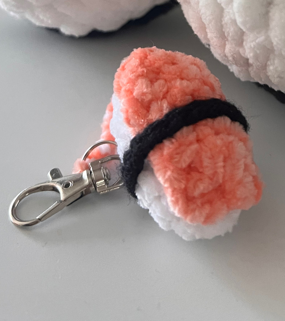 The Sushi plush keychain pattern is free on Ribblr.
