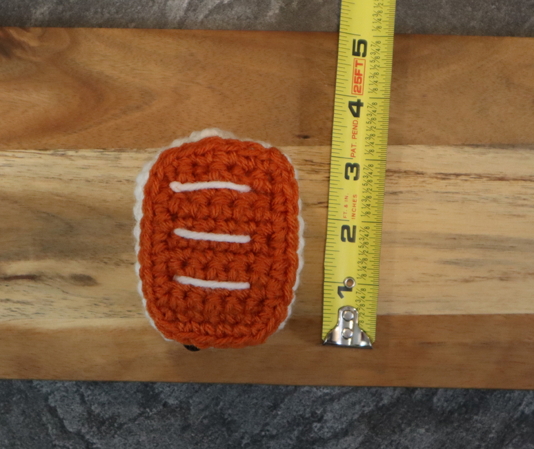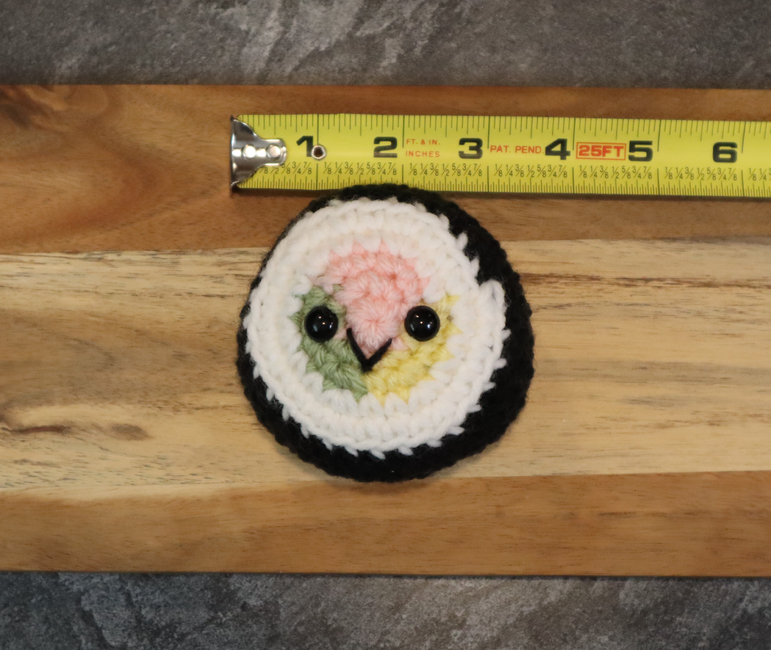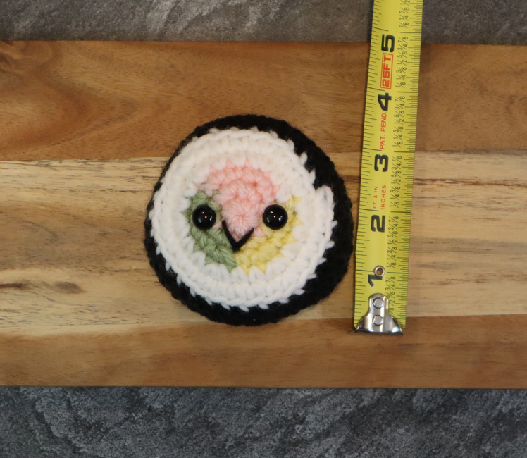 The sushi measures approximately 3.5" tall by 3.5" wide.
