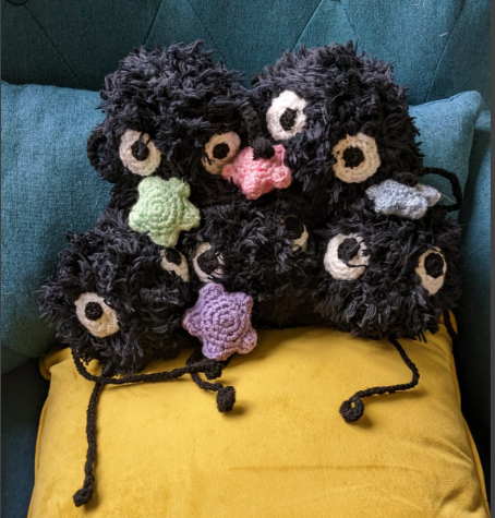 Metzlimoo Makes designed the Susuwatari Soot Sprite pattern. Find more of their patterns on their Ribblr shop page.