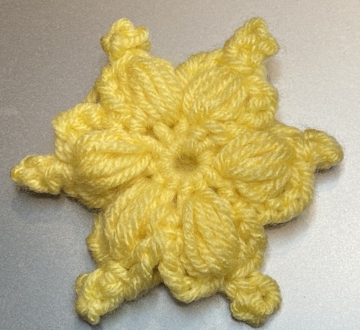 Short on time for a decoration? Make this 3 inch puff stitch flower in 10 minutes! Easy to follow directions with lots of pictures!