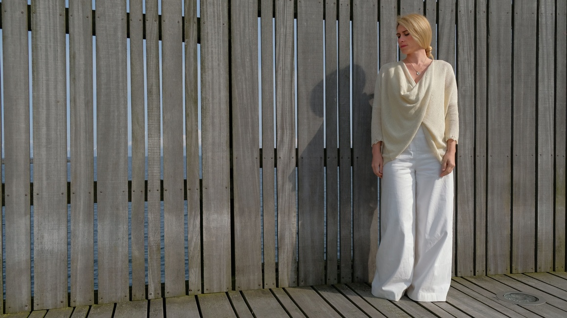 To make Swan@qs Twist Top 2424 you will need: ©Knit One Crochet too YarnDAISY (100 gr/272-yd), 38% Linen, 32% Silk, 30% HempMain Color: #202 Porcelain 6 (7, 8, 9, 10) Hanks, Stitch markers. Tools required: Size 6 (4 mm) Circular needle or size needed to obtain gauge, Tapestry needle.