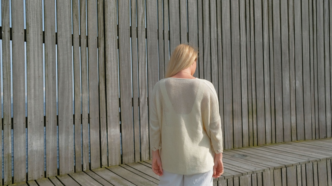Knit One, Crochet Too designed the Swan's Twist Top 2424 pattern. Find more of their patterns on their Ribblr shop page.
