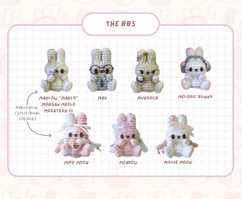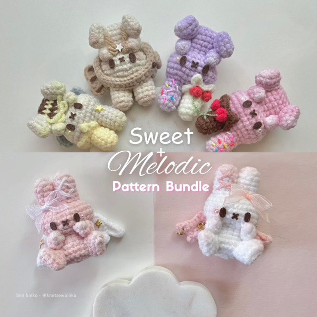 Included are both bun-bun patterns to make your very own sweet or melodic bbs :D