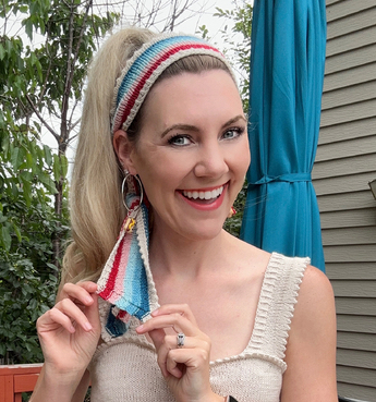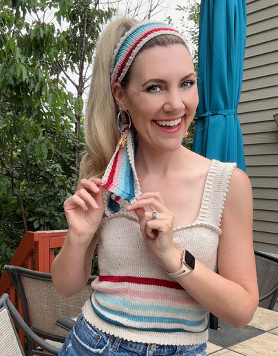 The Sweet Paulette Headband is the perfect matching accessory to the retro-inspired Sweet Paulette Top. This headband can be knit in a solid yarn or with stripes. It is a perfect scrappy project and so cute!