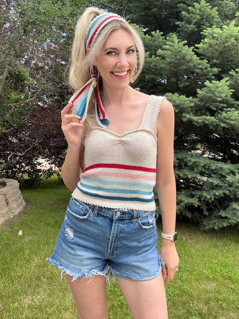 I often find difficulty finding cute and lightweight summer knits that cover the bra straps, but the Sweet Paulette Top was designed to do just that! So 'Bend and Snap!'