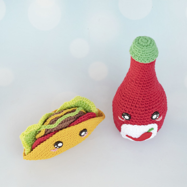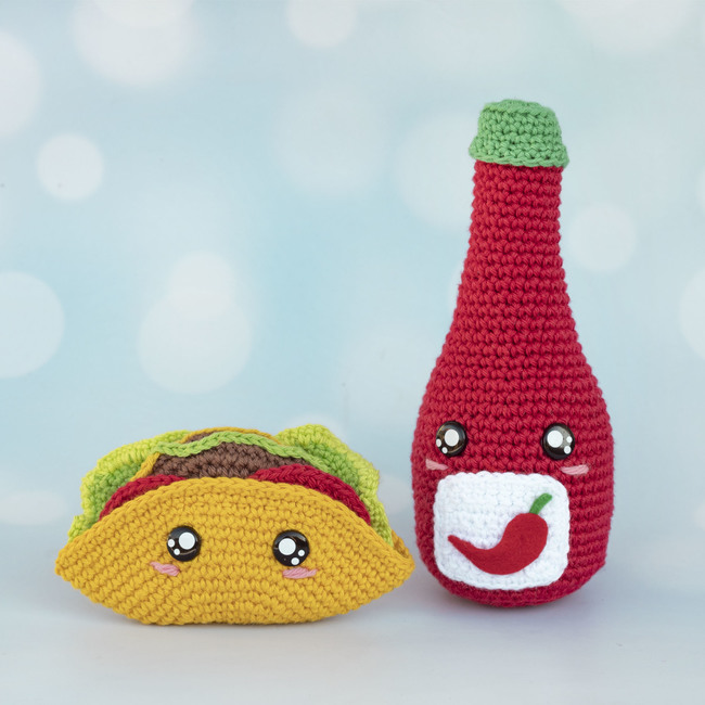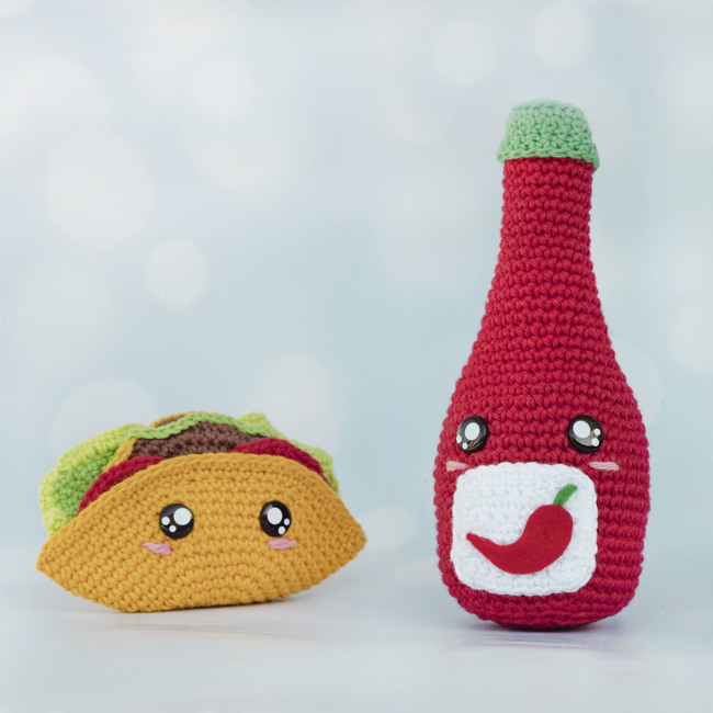 You will find step-by-step instructions for crocheting a Taco and Hot Chili Sauce kawaii style.