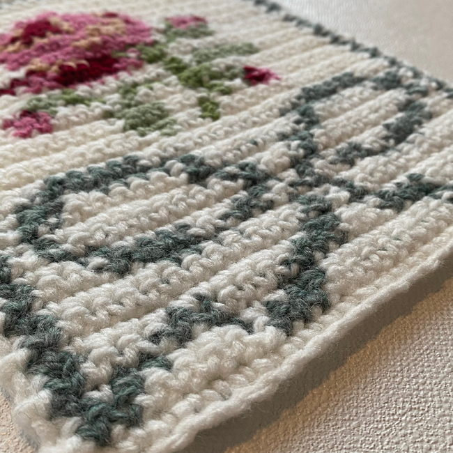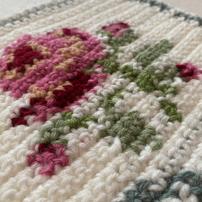 This is a tapestry Bow and Rose pattern! To make this, you'll need to be able to follow along the gridded chart included within this pattern and be comfortable switching multiple colors at once. This pattern only consists of sc.
