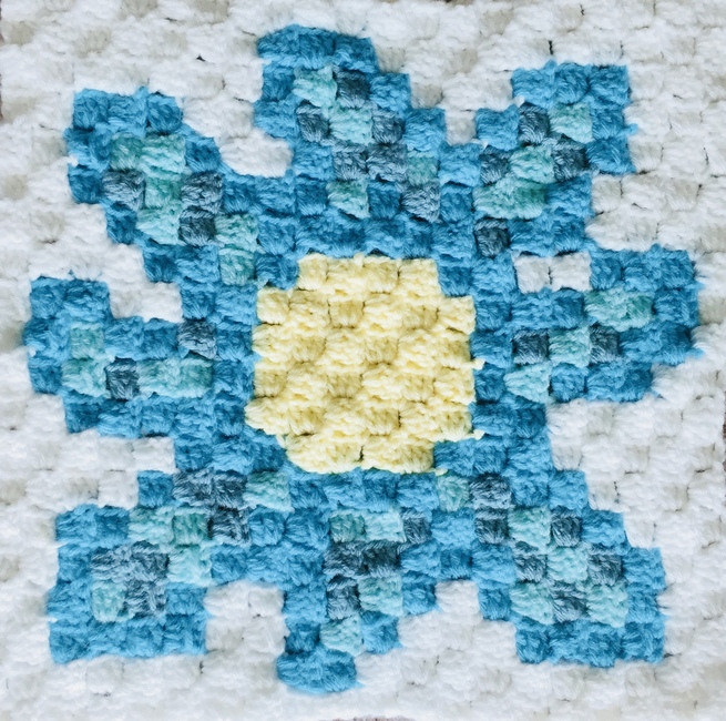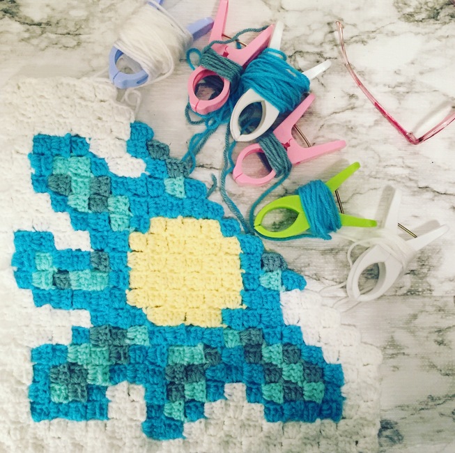 It is made using Classic C2C crochet, which uses chain stitches and double crochets. It also involves colors changes.