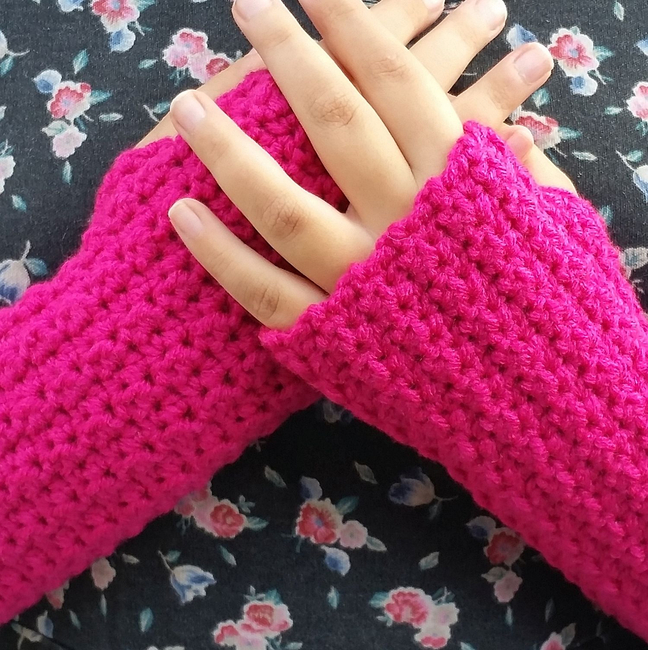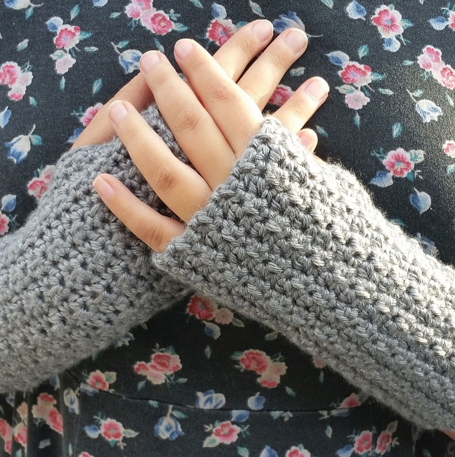 This fingerless glove pattern is easy to read and works up quickly. The gloves have a textured feel to them and are great for keeping your hands warm while leaving your fingers free to do whatever you need.