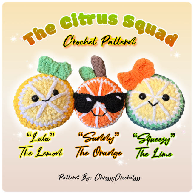 Get ready to craft some juicy joy with The Citrus Squad! This fruity trio is here to squeeze some sunshine into your crochet life. Perfect for market prep, seasonal decor, or simply adding some vitamin C-ute to your collection!