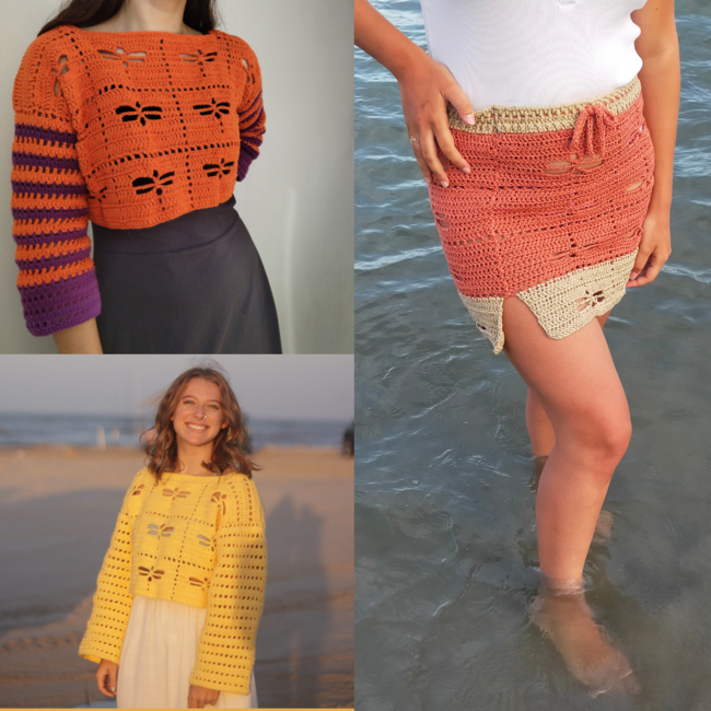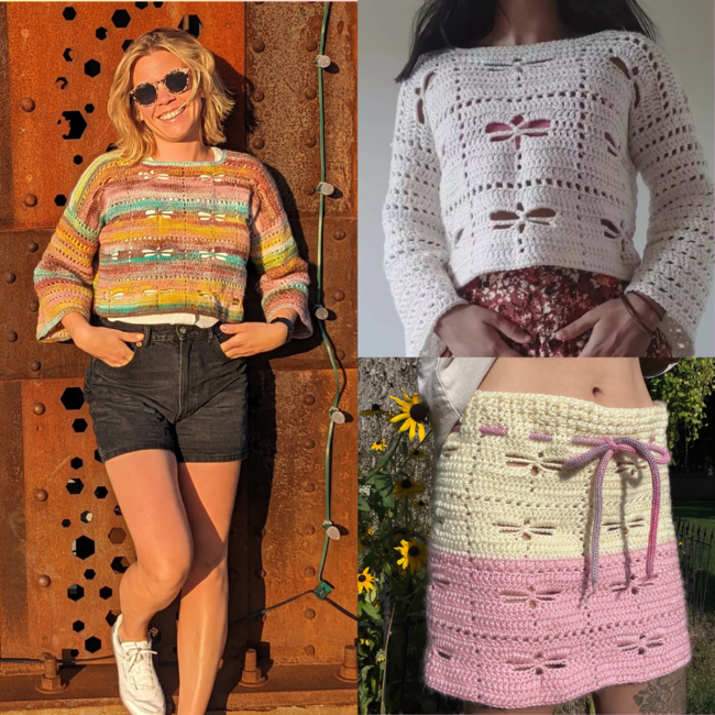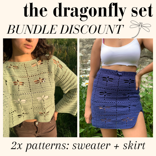 Pattern bundle: The Dragonfly Sweater and The Dragonfly Skirt. Buy both patterns and save!