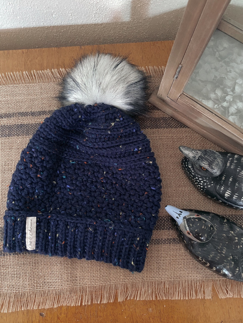 Oak and Autumn designed the The Duck Hill Beanie pattern. Find more of their patterns on their Ribblr shop page.
