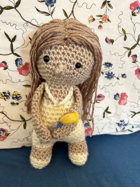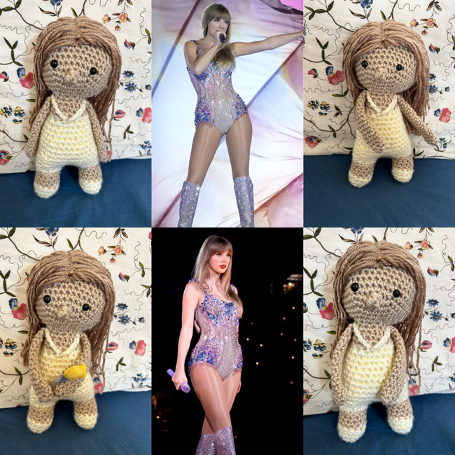 The doll is inspired by Taylor Swift's "The ERAS Tour" LOVER outfit from the opening night of the LOVER section of the show. The doll is made using continuous rounds, working bottoms up. If using plastic safety eyes, secure them in place before stuffing and sewing. You may sew your eyes on; if worried about choking. Please take into account extra yardage. Before sewing please ensure you have flipped your work so that the right side is outward facing and be sure to be stuffing your work firmly.