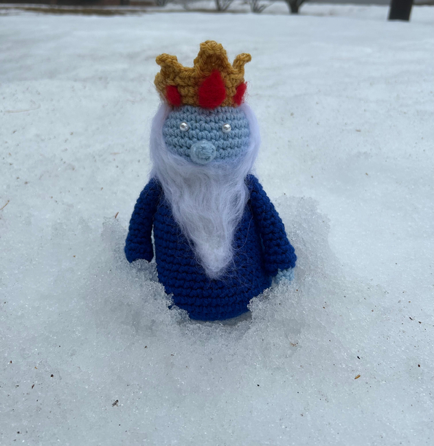 Amigurumi of the Ice King from Adventure Time!! This is a beginner/intermediate crochet pattern that requires needle felting as well!!