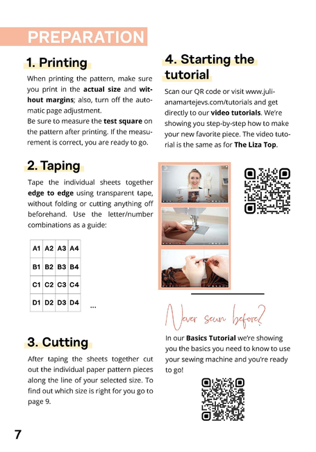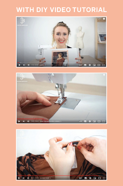 Use the video sewing instructions to the pattern and sew along step by step with Juliana. If you've never sewn before, watch the sewing machine basics video tutorial first. There you will learn about the components of a sewing machine and how to sew your first seam.