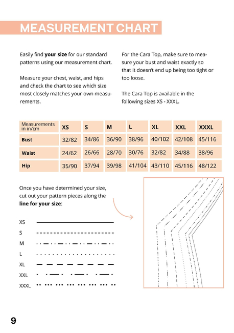 - jersey top sewing pattern in German and English (in sizes XS-XXXL or customized to your measurements, either as a paper pattern or as a PDF download in DIN A4 and US Letter)