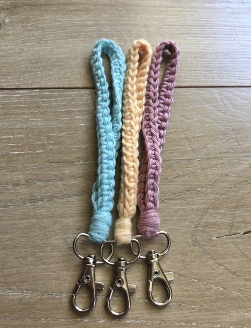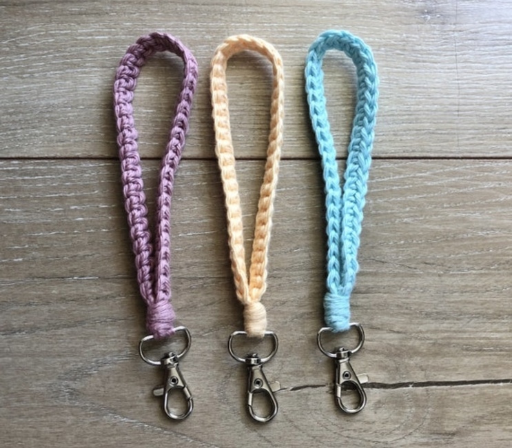 Dannis Designs Crafts designed the The Karter keychain wristlet pattern. Find more of their patterns on their Ribblr shop page.
