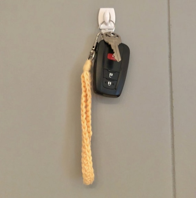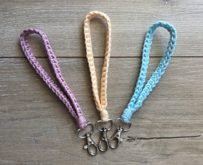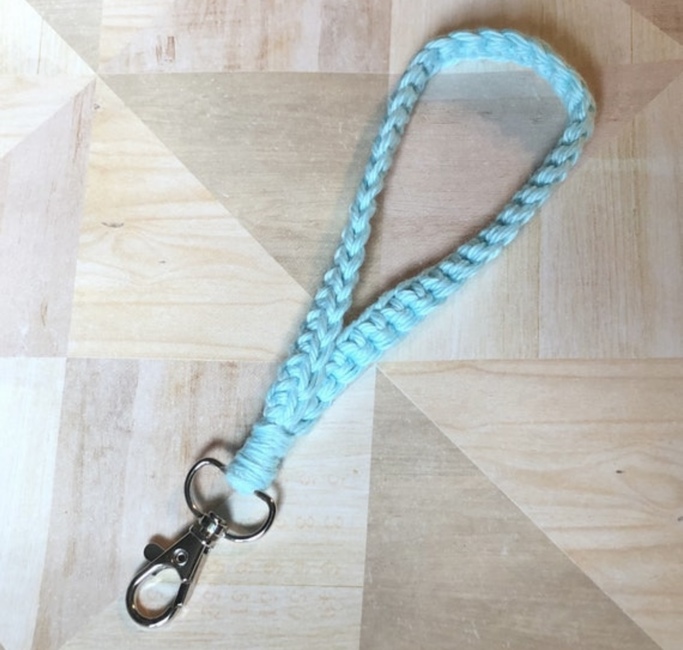 To make The Karter keychain wristlet you will need: Worsted weight cotton, keychain clasp. Tools required: 5 mm.