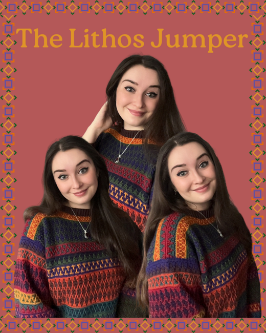 Lithos means stone, and The Lithos Jumper embodies the idea of jewel toned repeats to create a versatile jumper. The Lithos Jumper is the perfect addition to your wardrobe, with both long sleeved and short sleeved jumpers based on personal preference!