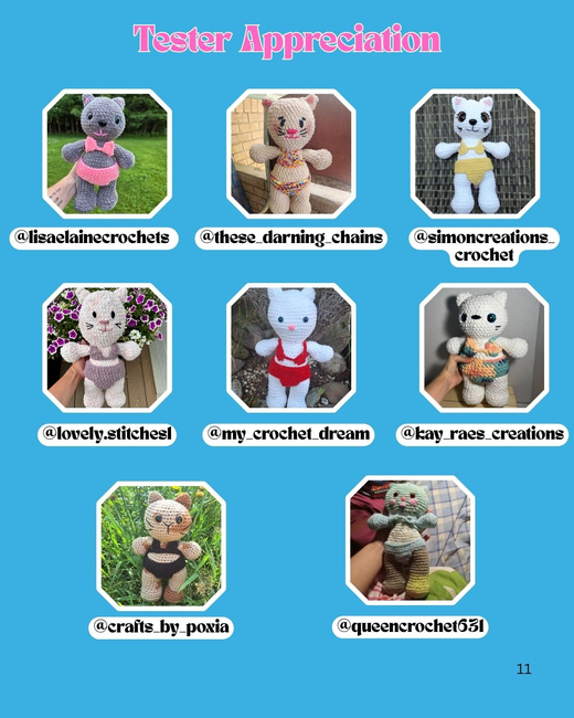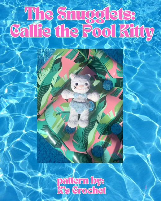 K's Crochet designed the The Snugglets: Callie the Pool Kitty pattern. Find more of their patterns on their Ribblr shop page.