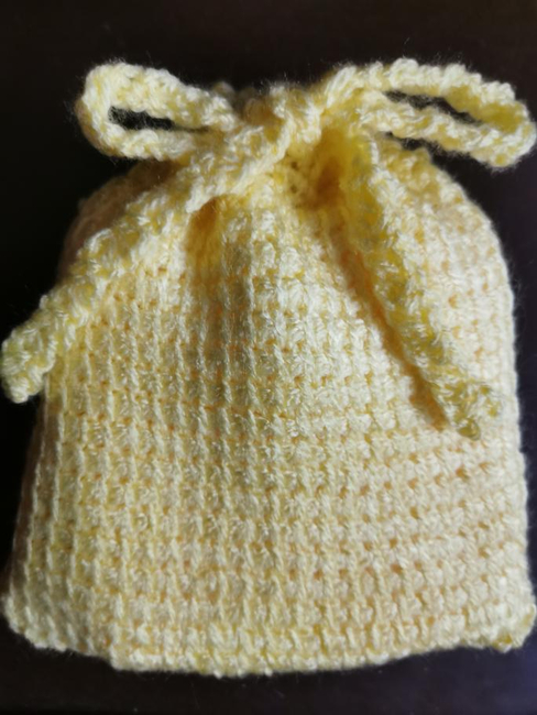 - The pouch edging and drawstring are crocheted using a 3.75mm hook