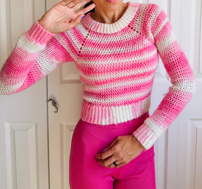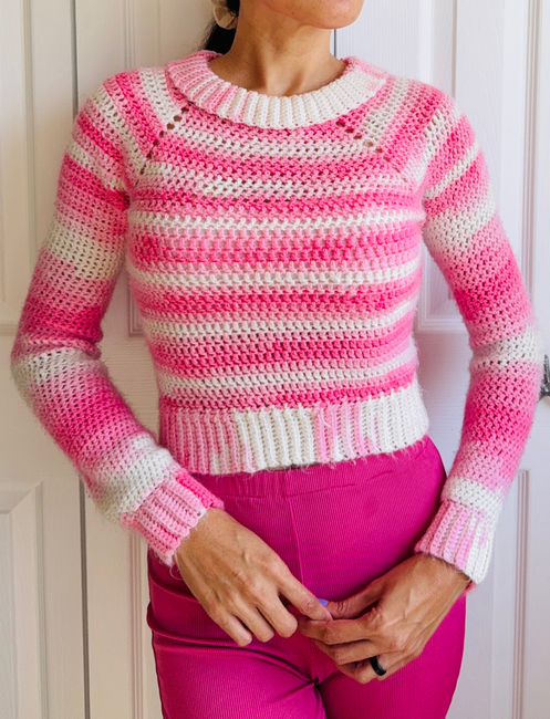 Pink Crochet by Riza designed the The Strawberry Milkshake Raglan pattern. Find more of their patterns on their Ribblr shop page.
