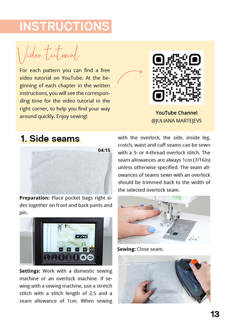 Use the video sewing instructions to the pattern and sew along step by step with Juliana. If you've never sewn before, watch the sewing machine basics video tutorial first. There you will learn about the components of a sewing machine and how to sew your first seam.