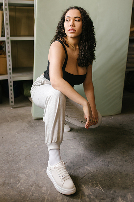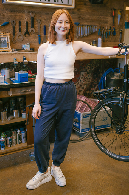 If you want to make the jogging look complete, sew a sweatshirt from the same fabric to match the sweatpants pattern. The sweatshirt sewing pattern The Sally Sweater is perfect for this with its loose cut and wide sleeves.