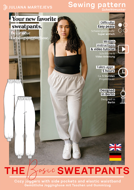 -sweatpants sewing pattern in German and English (in sizes XS-XXXL or customized to your measurements, either as paper pattern or as PDF download -in DIN A4 and US Letter)