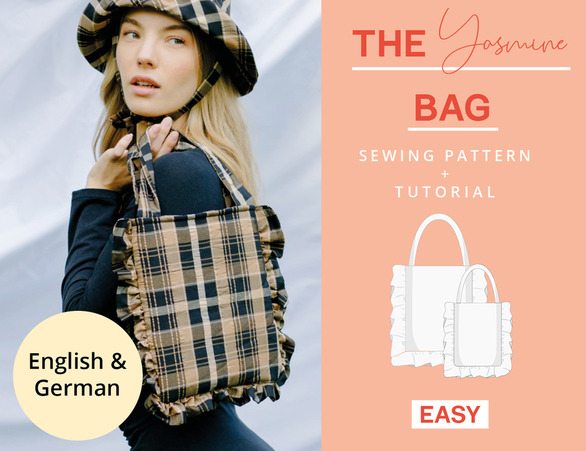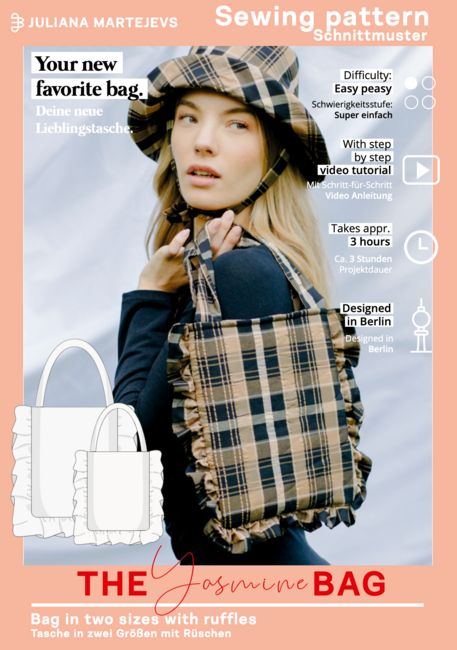 With this bag sewing pattern, you're right on trend. Not only since the Netflix series "Bridgerton" ruffles are again an important detail in fashion. However, the series has probably intensified the trend and the lavish gathers, ruffles and flounces are creeping into not only garments but also accessories, such as this tote bag pattern. The pretty embellishment of the Yasmine Bag makes you daydream and you can sew a cool bag with ruffles! The cool tote bag pattern comes in two sizes!